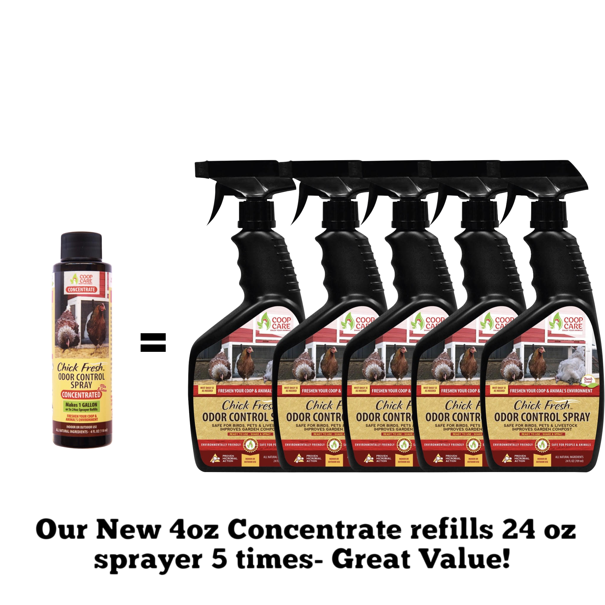 Chick Fresh is a natural spray to greatly reduce harmful ammonia and odors in your coops and brooders.